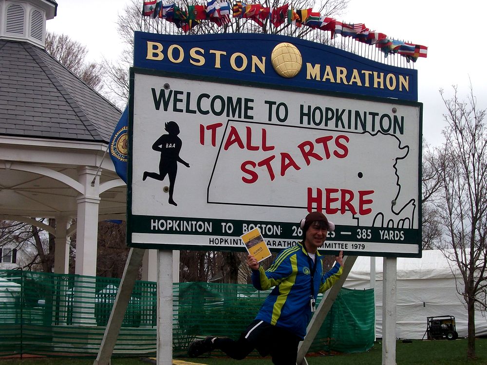 ホプキントンにあるスタートの看板。(前日に撮影)